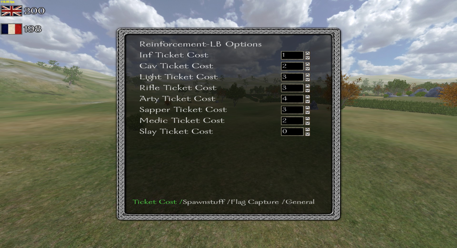 - (Max) Flag Capture Points: The amount of tickets a team loses, when the enemy captured a flag (if Dynamic Flag Capture Points is on, then this is the max amount you can lose)